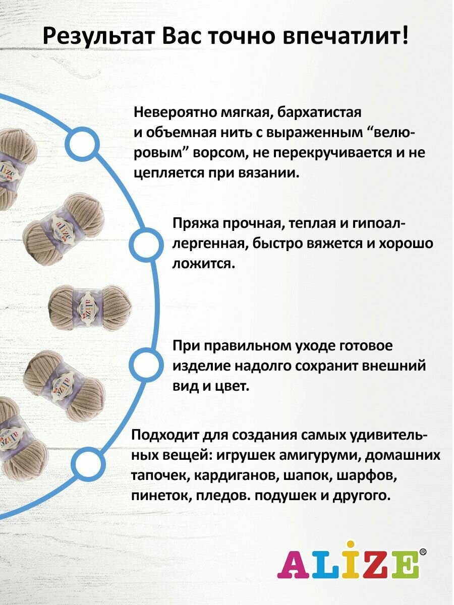 СохранитьПряжа ALIZE "Velluto", 100% микрополиэстер, 68 мх100 г, 530 бежевая интересное: