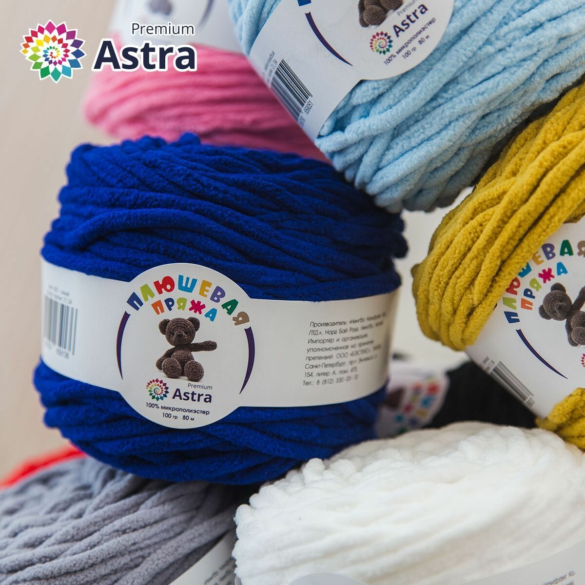 Пряжа для вязания Astra Premium 'Плюшевая' 100г, 80м (100% микрополиэстер) (620 синий), 2 мотка