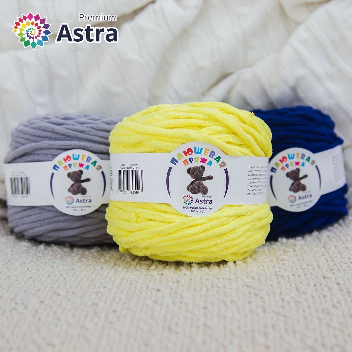 Пряжа для вязания Astra Premium 'Плюшевая' 100г, 80м (100% микрополиэстер) (311 желтый), 2 мотка