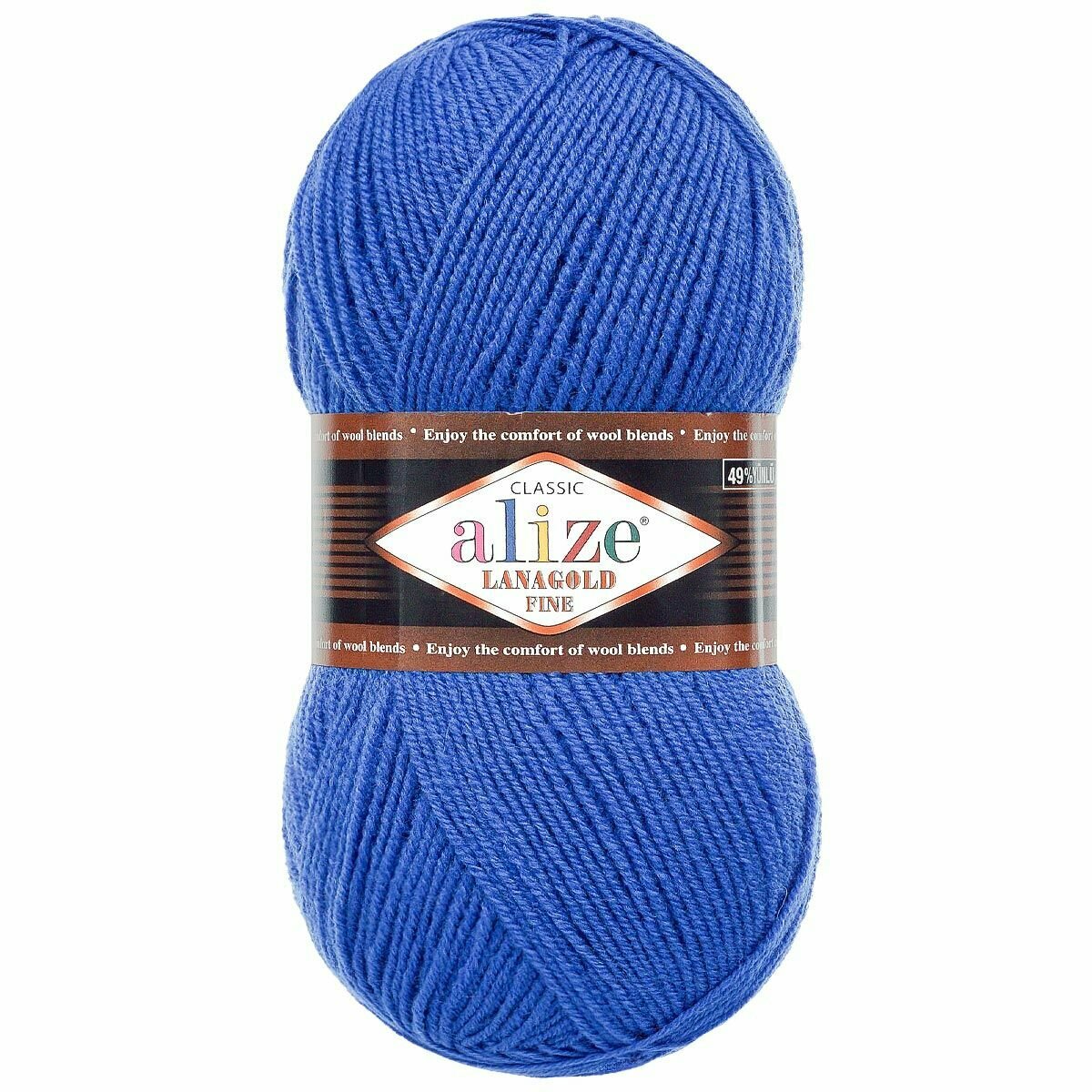 Купить Пряжа для вязания ALIZE LANAGOLD FINE: 141 (василек), 5 шт 390 м 100 г, 49% шерсть 51% акрил