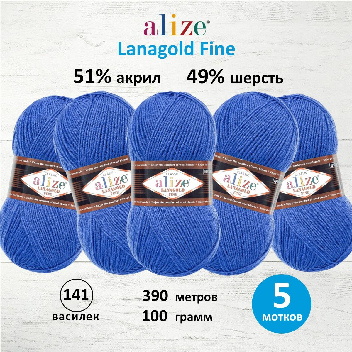 Пряжа для вязания Alize Lanagold Fine, цвет 141 василек, 100г, 390м, 5шт/упак