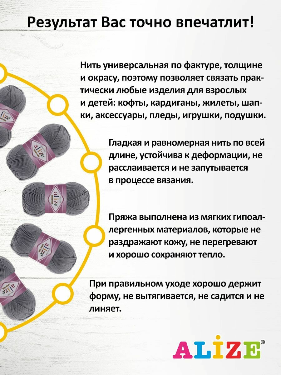 СохранитьПряжа ALIZE Cotton gold, угольный серый - 87, 55% хлопок, 45% акрил, 5 мотков, 100 г., 330 м. интересное: