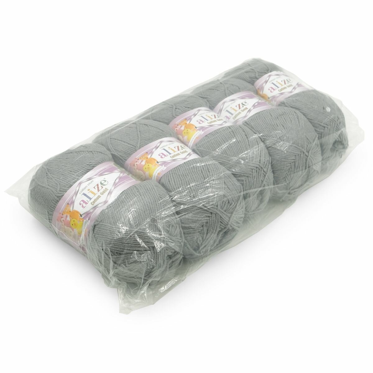 Пряжа ALIZE "Cotton gold", 100 гр 330 м, 55% хлопок, 45% акрил, ТУ 200 серый, 5 шт