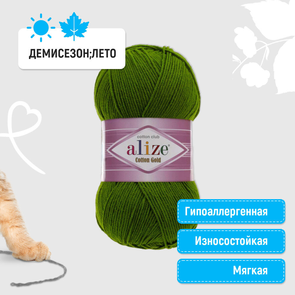 Пряжа Alize Cotton Gold спаржа (103), 55%хлопок/45%акрил, 330м, 100г, 1шт