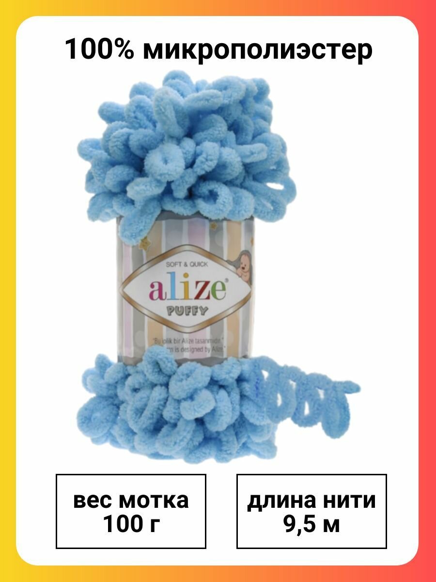 Пряжа ALIZE "Puffy", 100 г 9 м, 100% микрополиэстер, 374 голубой, 5 шт