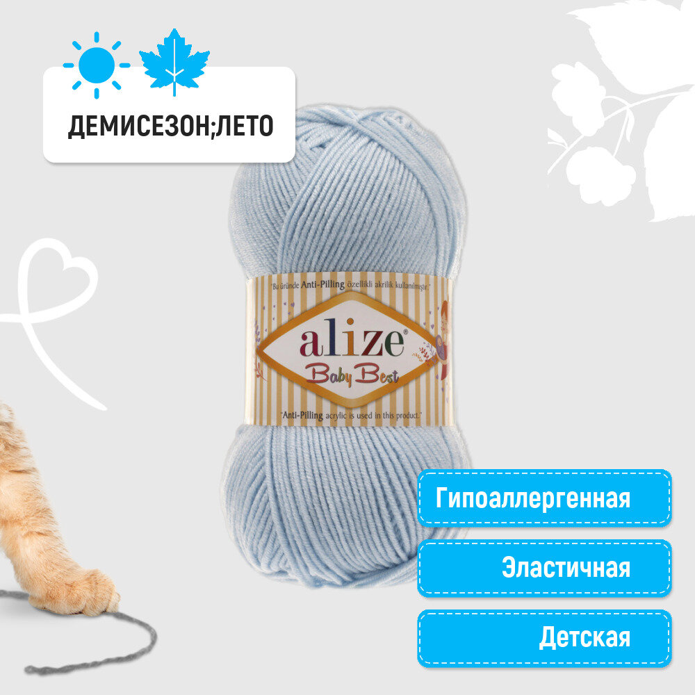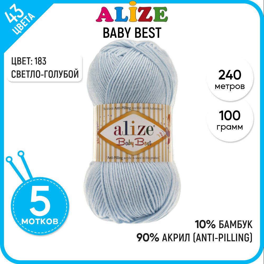 Пряжа Alize Baby best светло-голубой (183), 90%акрил/10%бамбук, 240м, 100г, 5шт