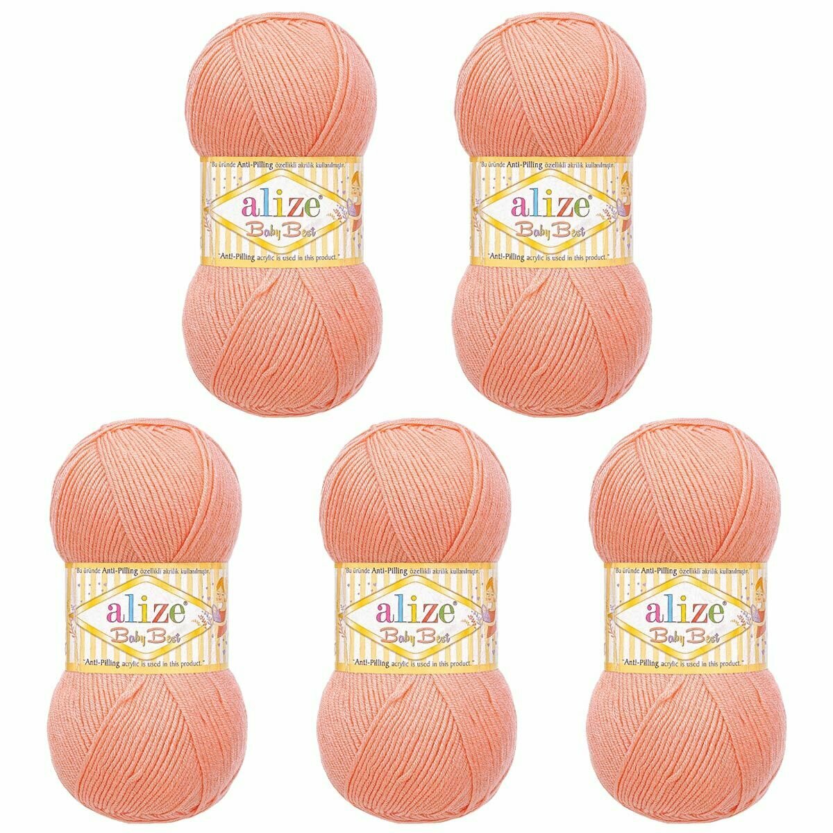 Купить Пряжа для вязания ALIZE 'Baby Best', 100г, 240м (10% бамбук, 90% акрил) Антипиллинг (145 персиковый), 5 мотков