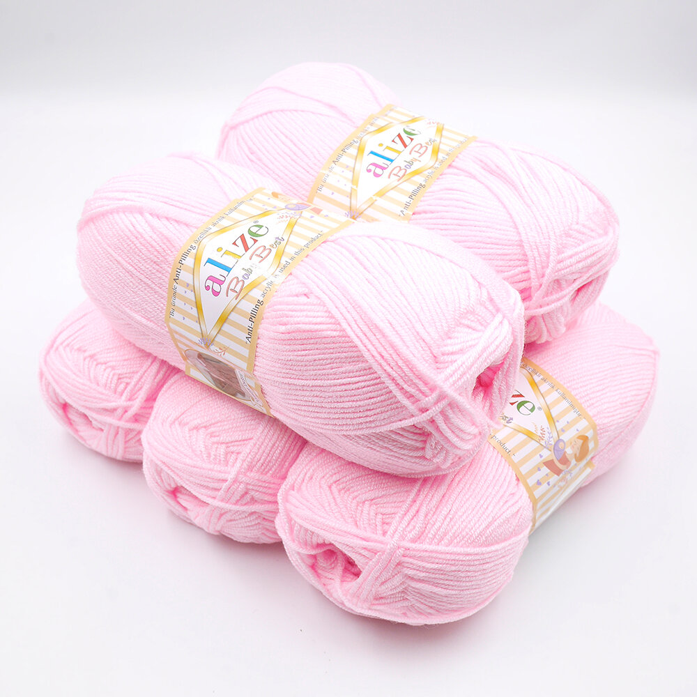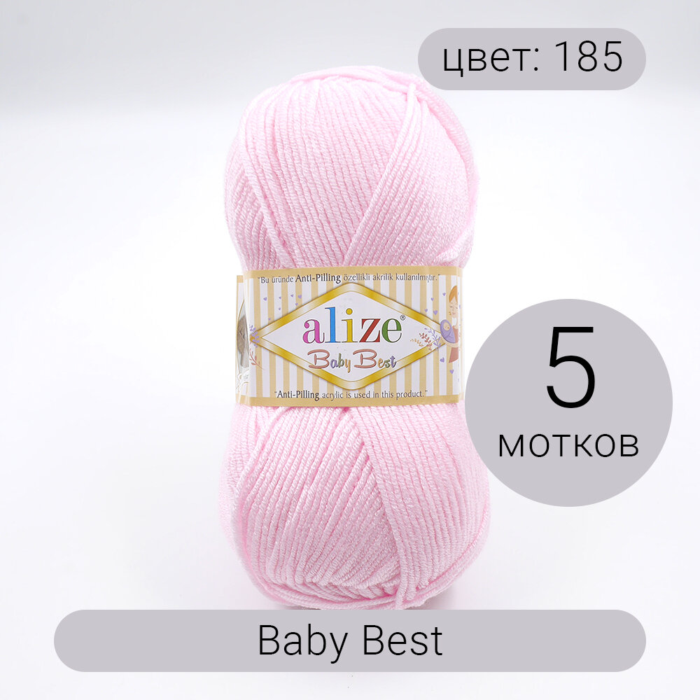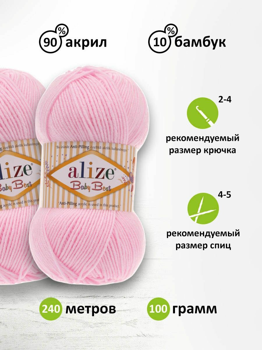 Пряжа для вязания Alize 'Baby Best', 100г, 240м (10% бамбук, 90% акрил), с эффектом антипиллинг (185 светло-розовый), 5 мотков