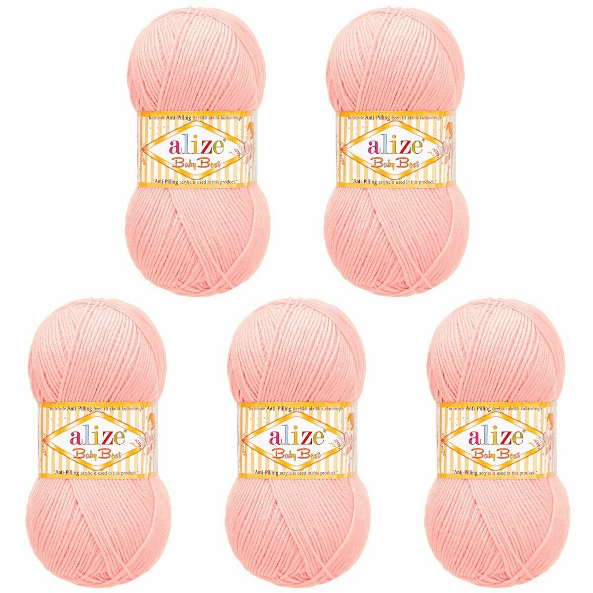 Пряжа ALIZE "Baby Best", 100 г 240 м, 10% бамбук, 90% акрил, с эффектом антипиллинг, 191 розовый, 5 шт