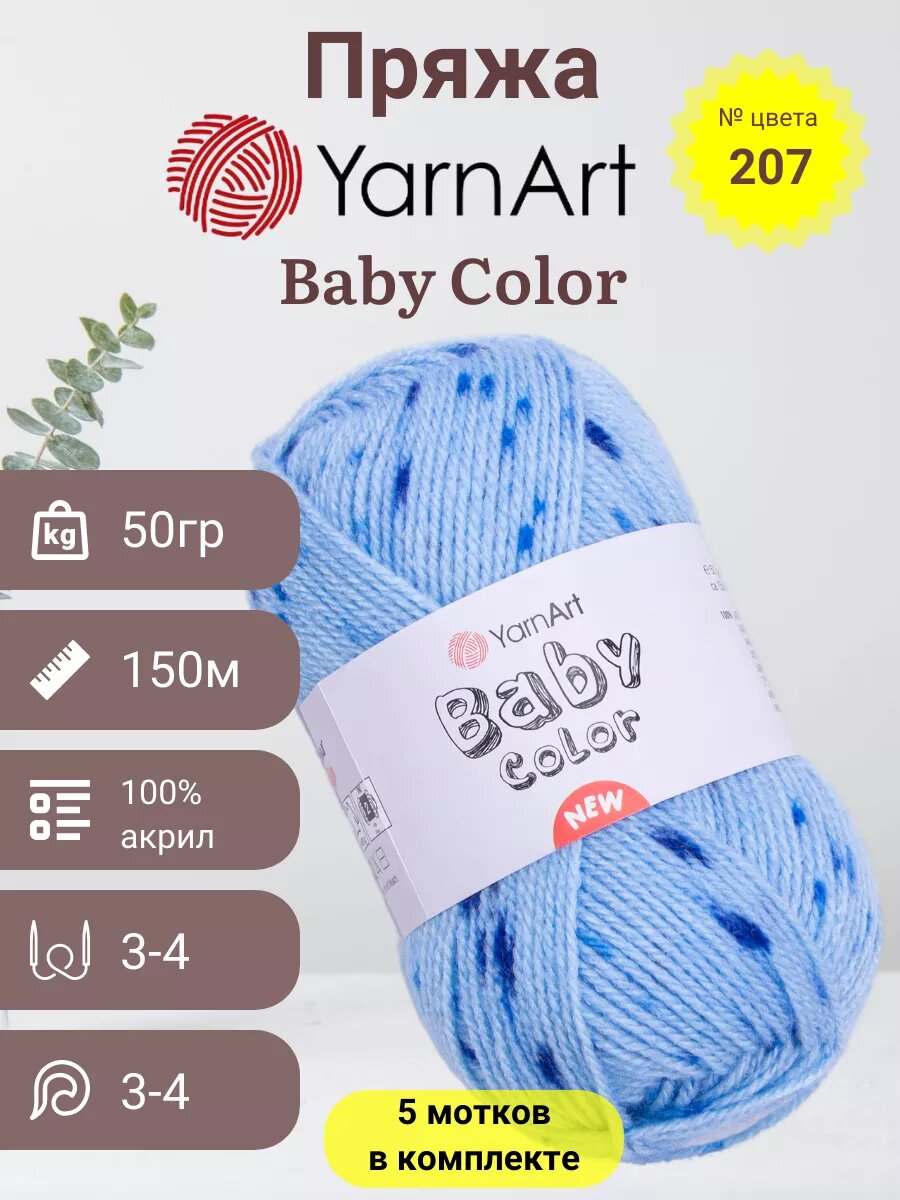 СохранитьПряжа YarnArt Baby color Голубой-синий (207) 5 мотков 50 г/150 м (100% акрил) ярнарт беби колор интересное:
