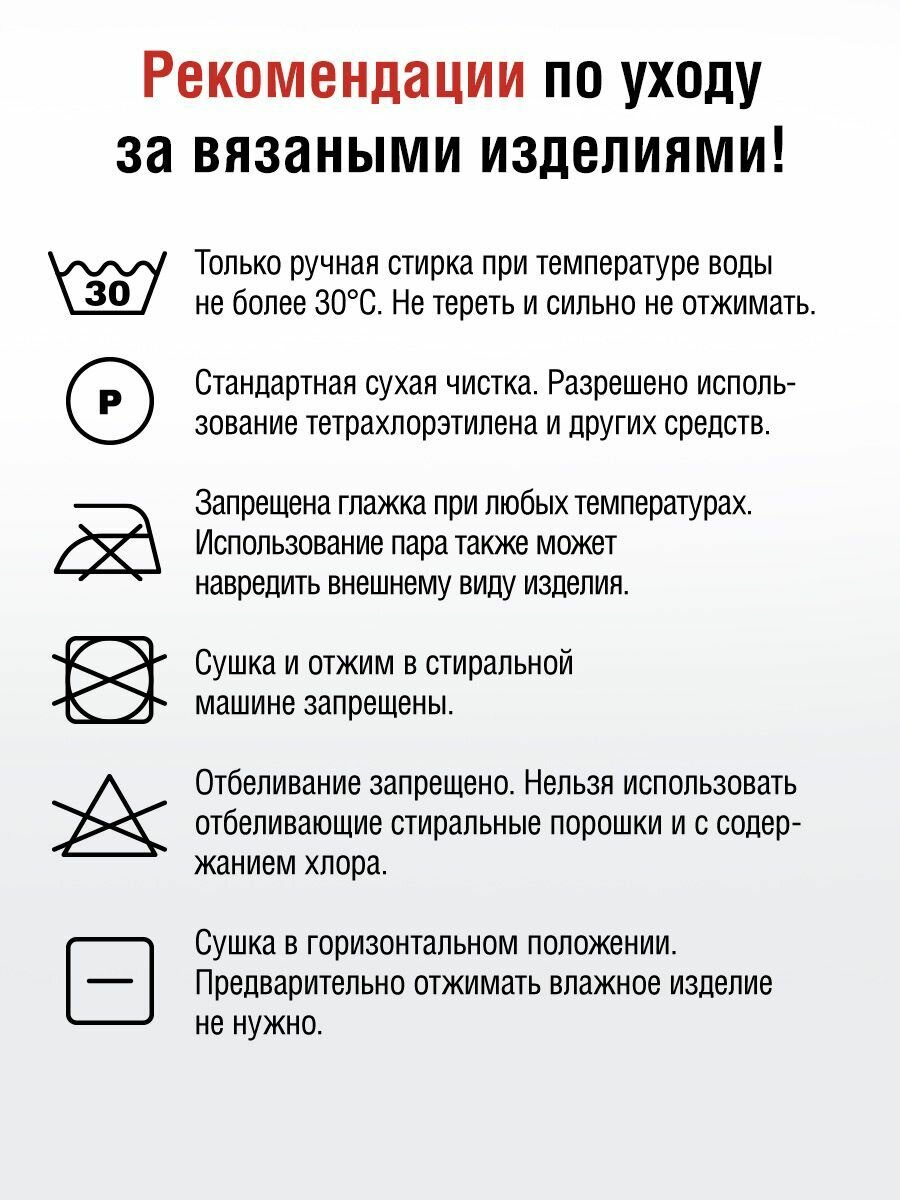 | Плотность вязания для образца 10х10 см | 20 рядов х 18 петель спицы 4.5, 16 рядов Х 14 петель крючок 5 |