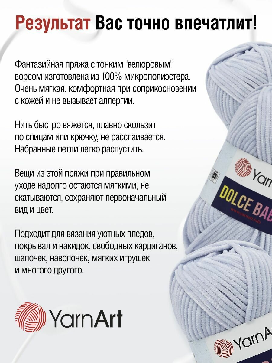 Ниже Вы можете прочитать отзывы на Пряжа для вязания YarnArt 'Dolce Baby' 50г, 85м (100% микрополиэстер) (776 голубой), 5 мотков, ознакомится с подробными характеристиками, посмотреть интересные обзоры и фотографии на Пряжа для вязания YarnArt 'Dolce Baby' 50г, 85м (100% микрополиэстер) (776 голубой), 5 мотков.
