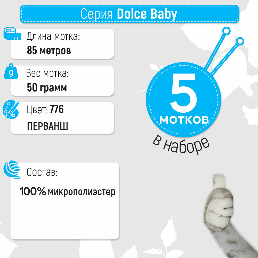 СохранитьПряжа для вязания YarnArt 'Dolce Baby' 50г, 85м (100% микрополиэстер) (776 голубой), 5 мотков интересное: