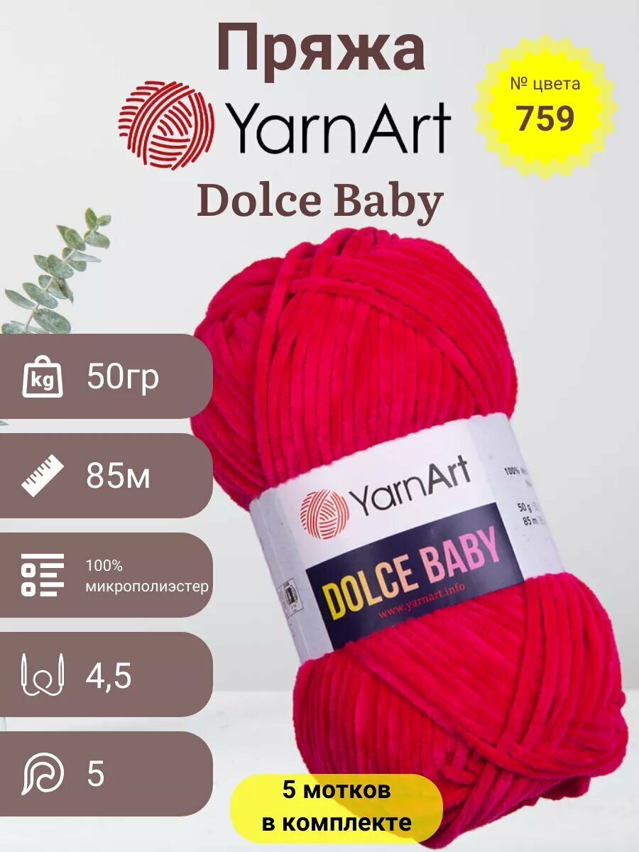 Пряжа YarnArt Dolce Baby 759 малиновый (50г/85м, упаковка 5 мотков)