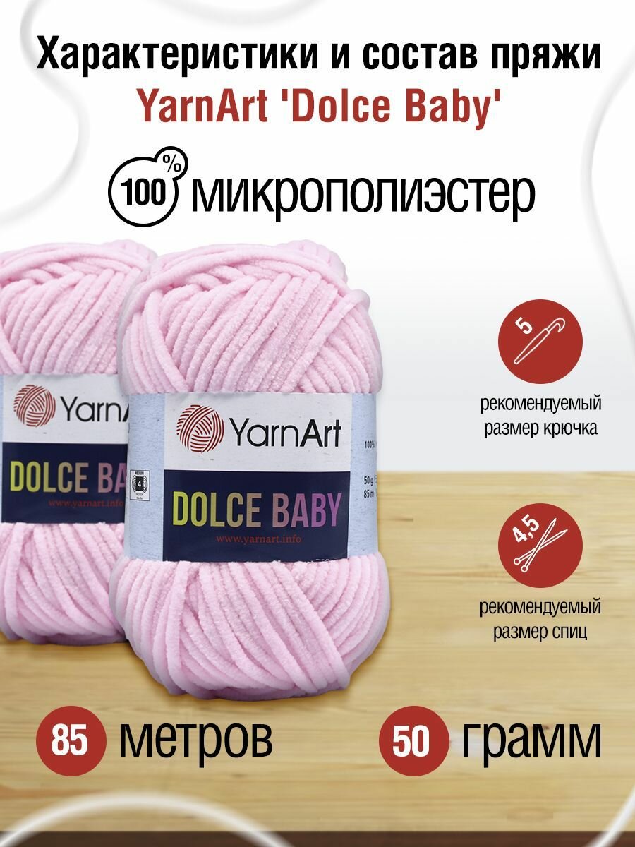 Пряжа YarnArt Ярн Арт Ярнарт плюшевая, Dolce Baby, толстая, микрополиэстер 100%, цвет 781, бледно-розовый, 5 шт. по 50 г, 85 м