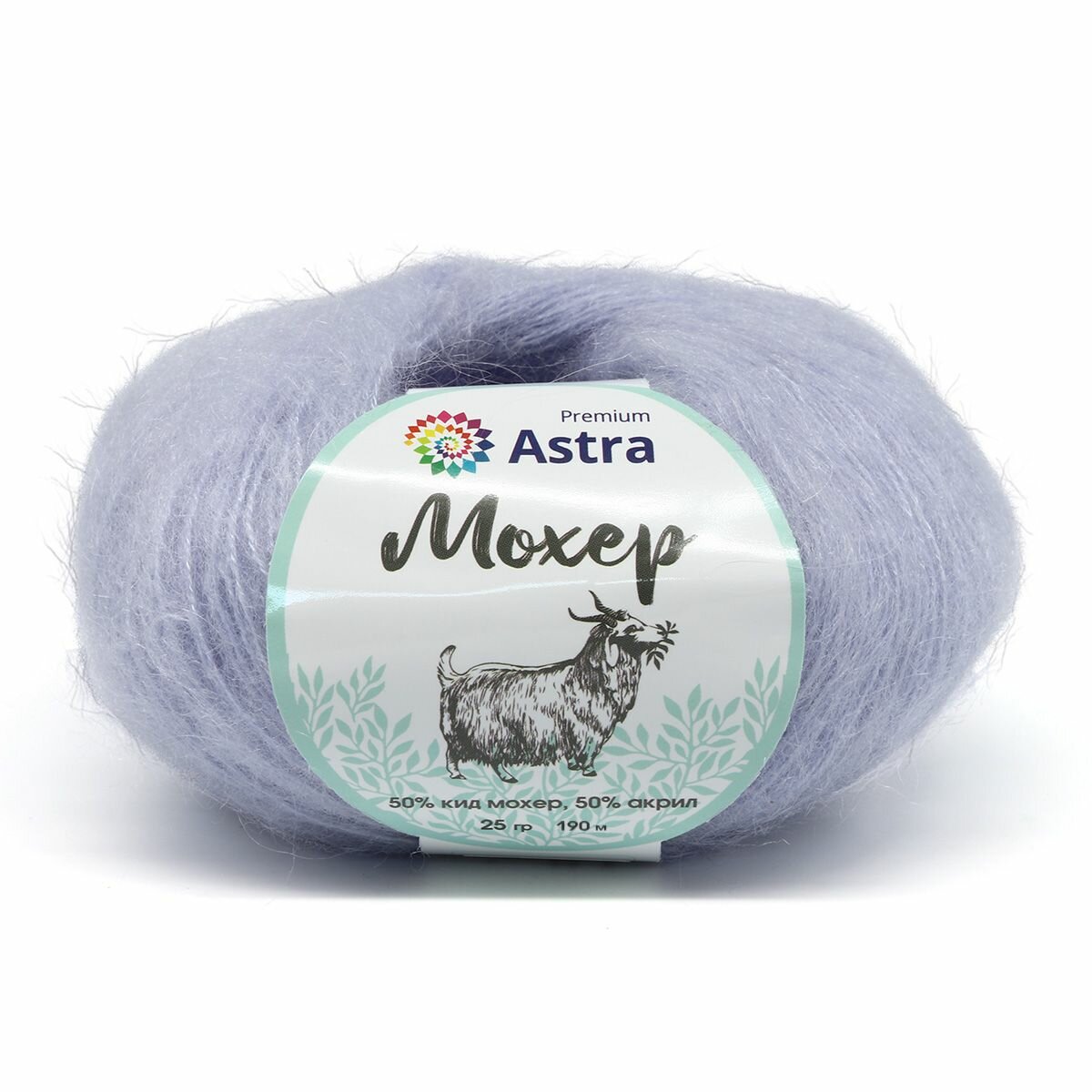 Пряжа Astra Premium "Мохер", 25 гр 190 м, 50% кид мохер, 50% акрил, 19 светлая лаванда, 4 шт