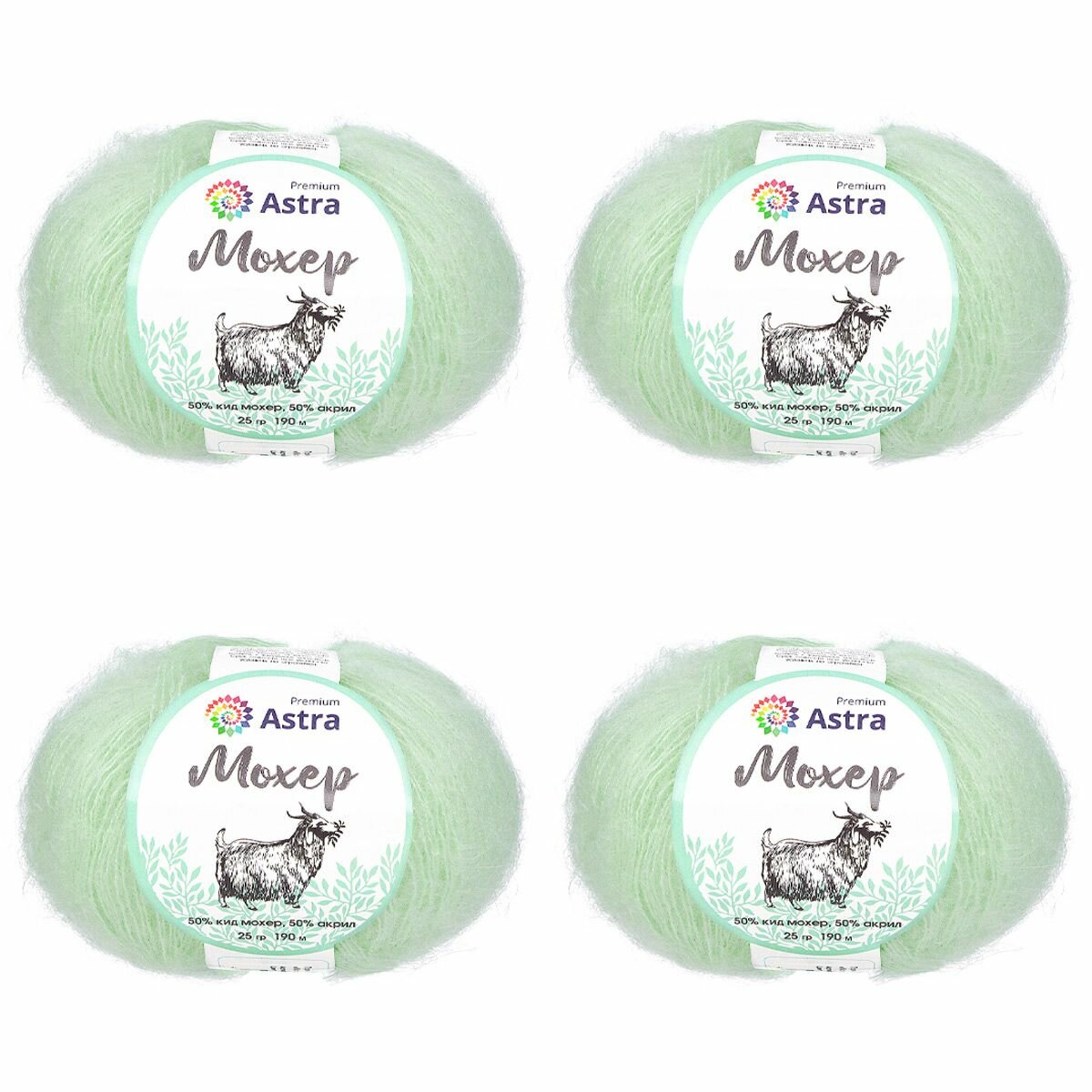 Пряжа Astra Premium "Мохер", 25 гр 190 м, 50% кид мохер, 50% акрил, 05 мятный, 4 шт