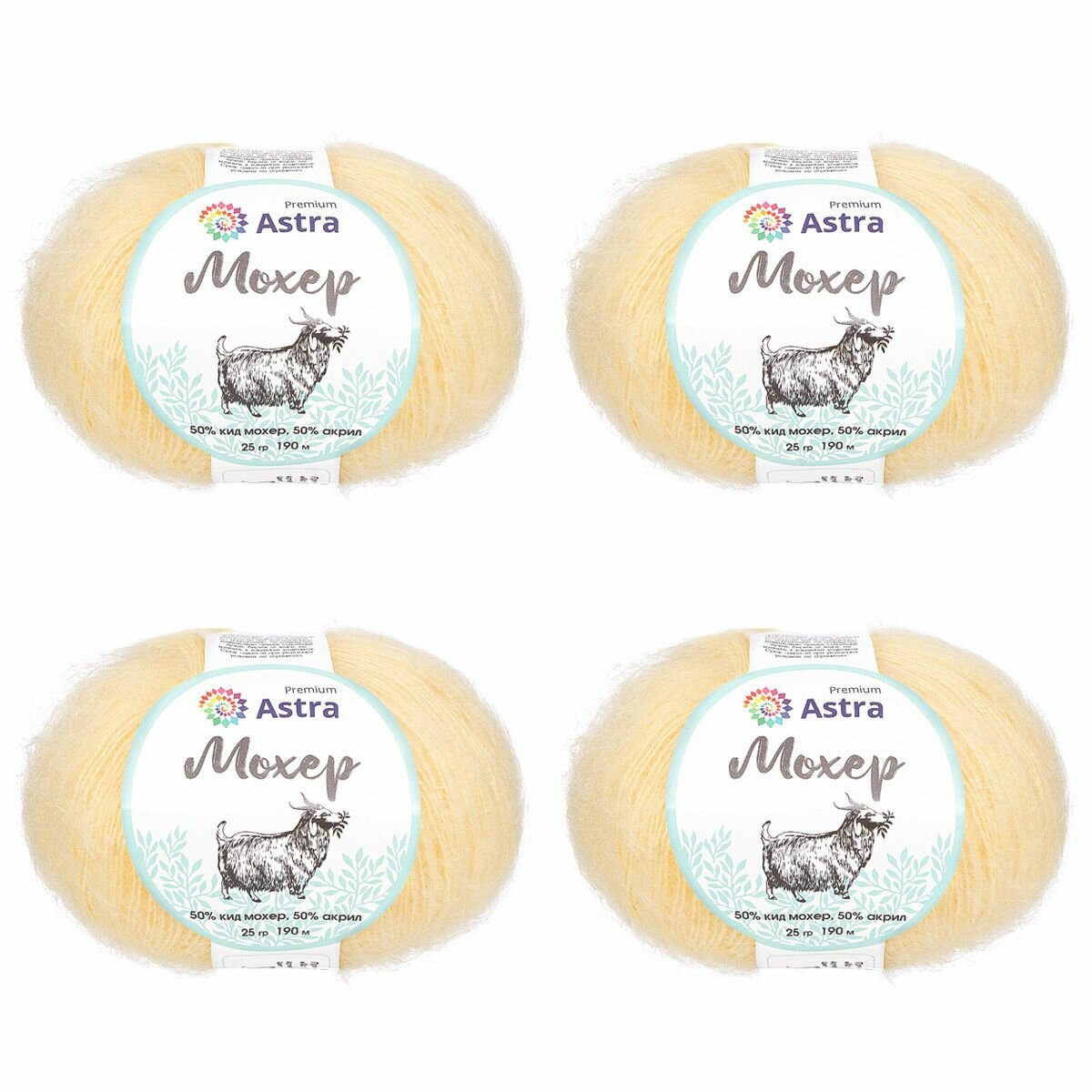Пряжа для вязания Astra Premium 'Мохер' (Mohair), 25г, 190м (50% кид мохер, 50% акрил) (17 светлый беж), 4 мотка