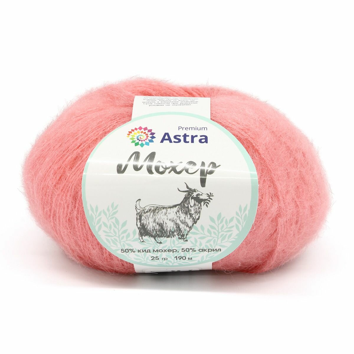 | Комплектация | Упаковка 4 штук Пряжа Astra Premium 'Мохер' (Mohair) 25гр 190м (+/-5%) (50% кид мохер, 50% акрил) (41 пудровый) |