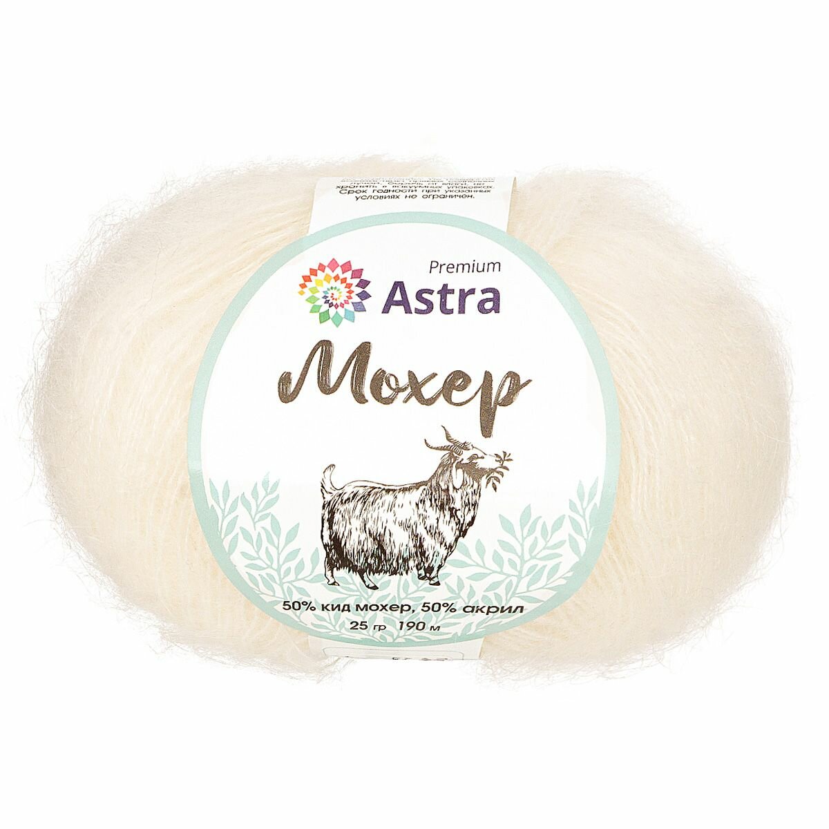 Пряжа Astra Premium "Mohair", 25 г, 190 м, 50% кид мохер, 50% акрил, цвет 01 белый, 4 мотка