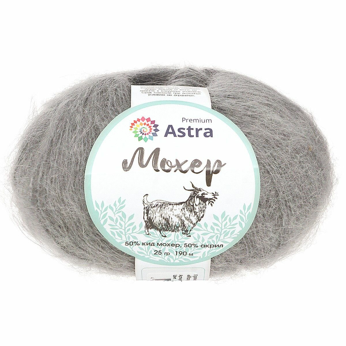 Пряжа для вязания Astra Premium 'Мохер' (Mohair) 25гр 190м (+/-5%) (50% кид мохер, 50% акрил) (21 дымчато-серый), 4 мотка
