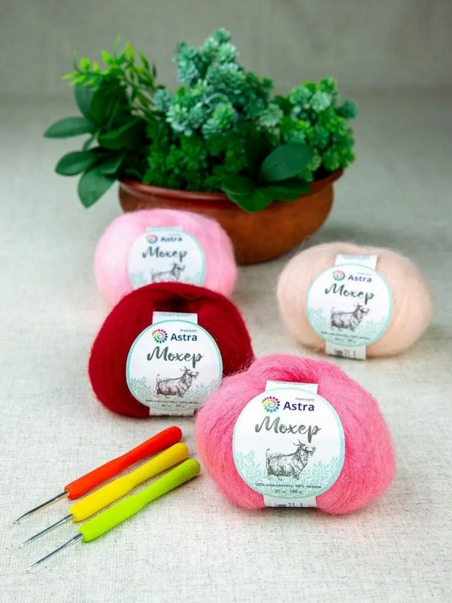 Пряжа Astra Premium "Мохер", 25 гр 190 м, 50% кид мохер, 50% акрил, 32 розовый, 4 шт