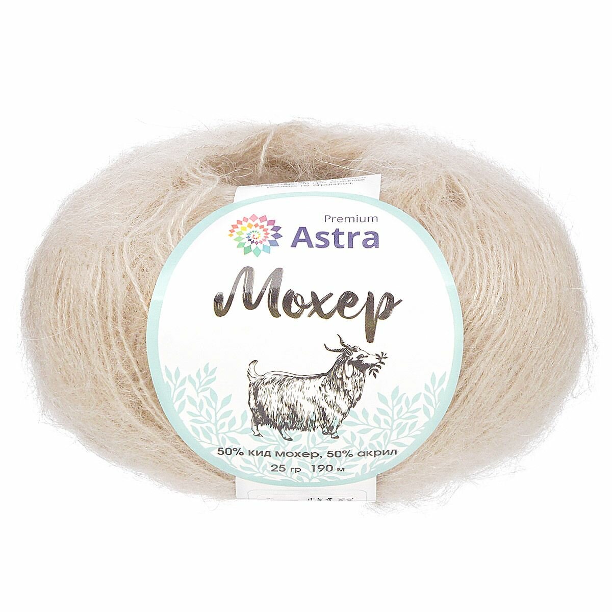 Пряжа для вязания Astra Premium 'Мохер' (Mohair) 25гр 190м (+/-5%) (50% кид мохер, 50% акрил) (17 светлый беж), 4 мотка