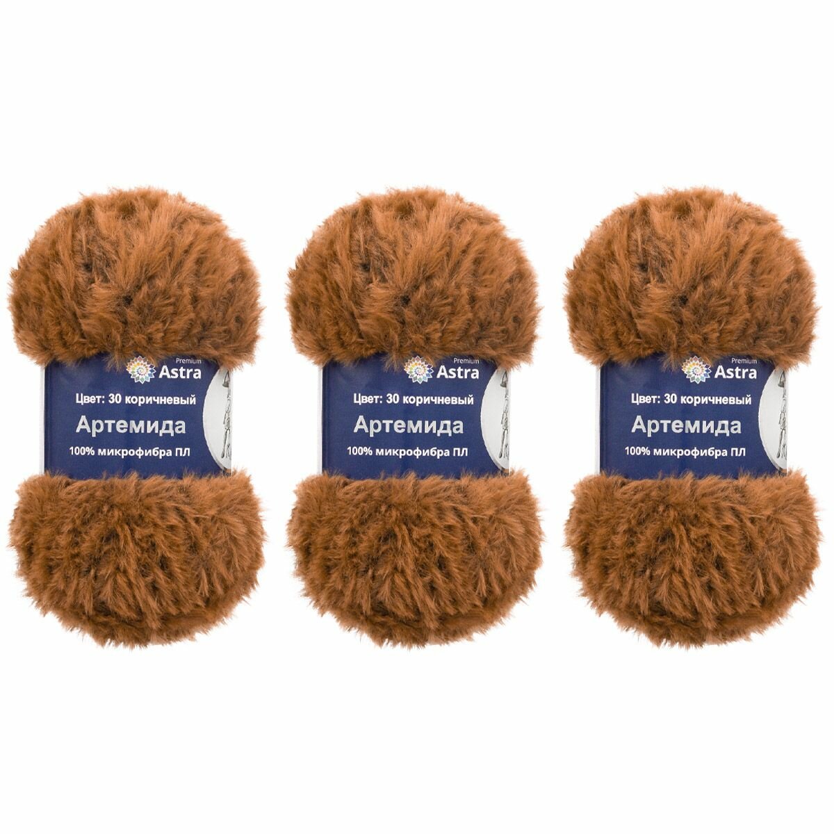 Пряжа Astra Premium "Артемида", 100 гр 60 м, 100% микрофибра ПЛ, 30 коричневый, 3 шт