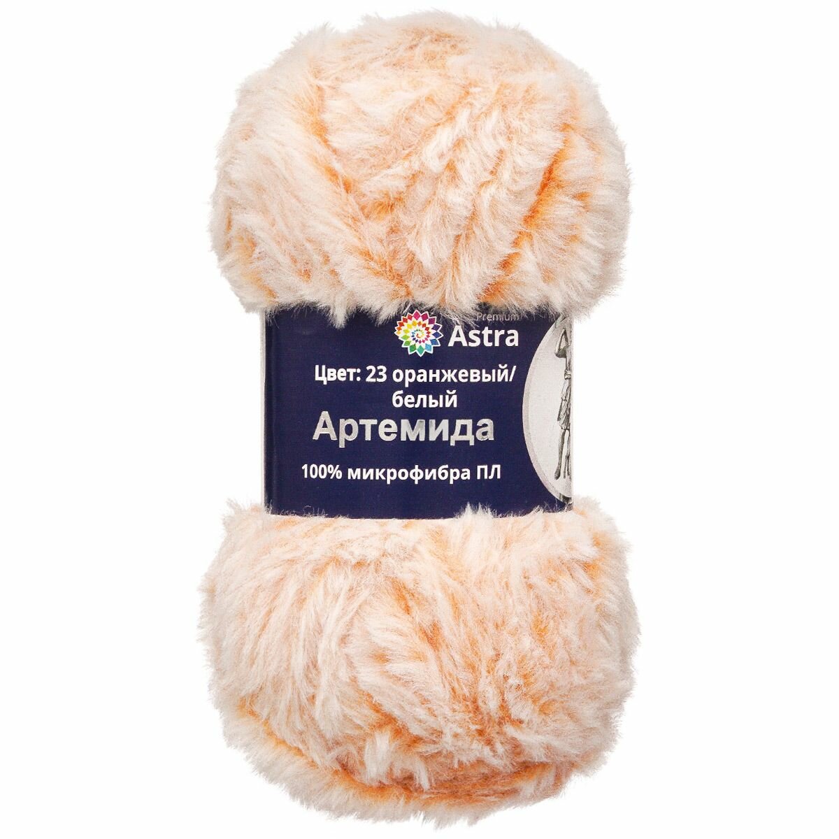 Пряжа для вязания Astra Premium 'Артемида', 100г, 60м (100% микрофибра ПЛ) (23 оранжевый, белый), 3 мотка