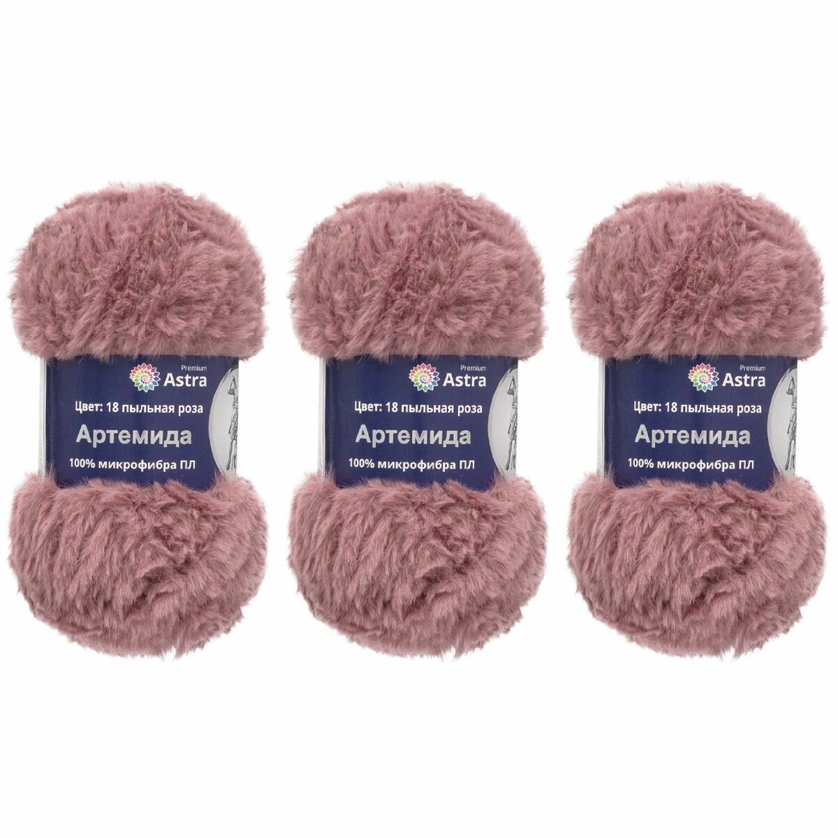 Пряжа Astra Premium "Артемида", 100 гр 60 м, 100% микрофибра ПЛ, 18 пыльная роза, 3 шт