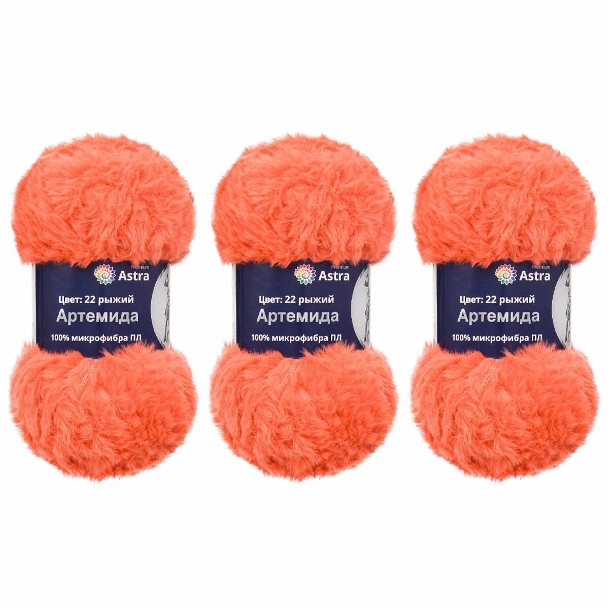 Пряжа Astra Premium "Артемида", 100 гр 60 м, 100% микрофибра ПЛ, 22 рыжий, 3 шт