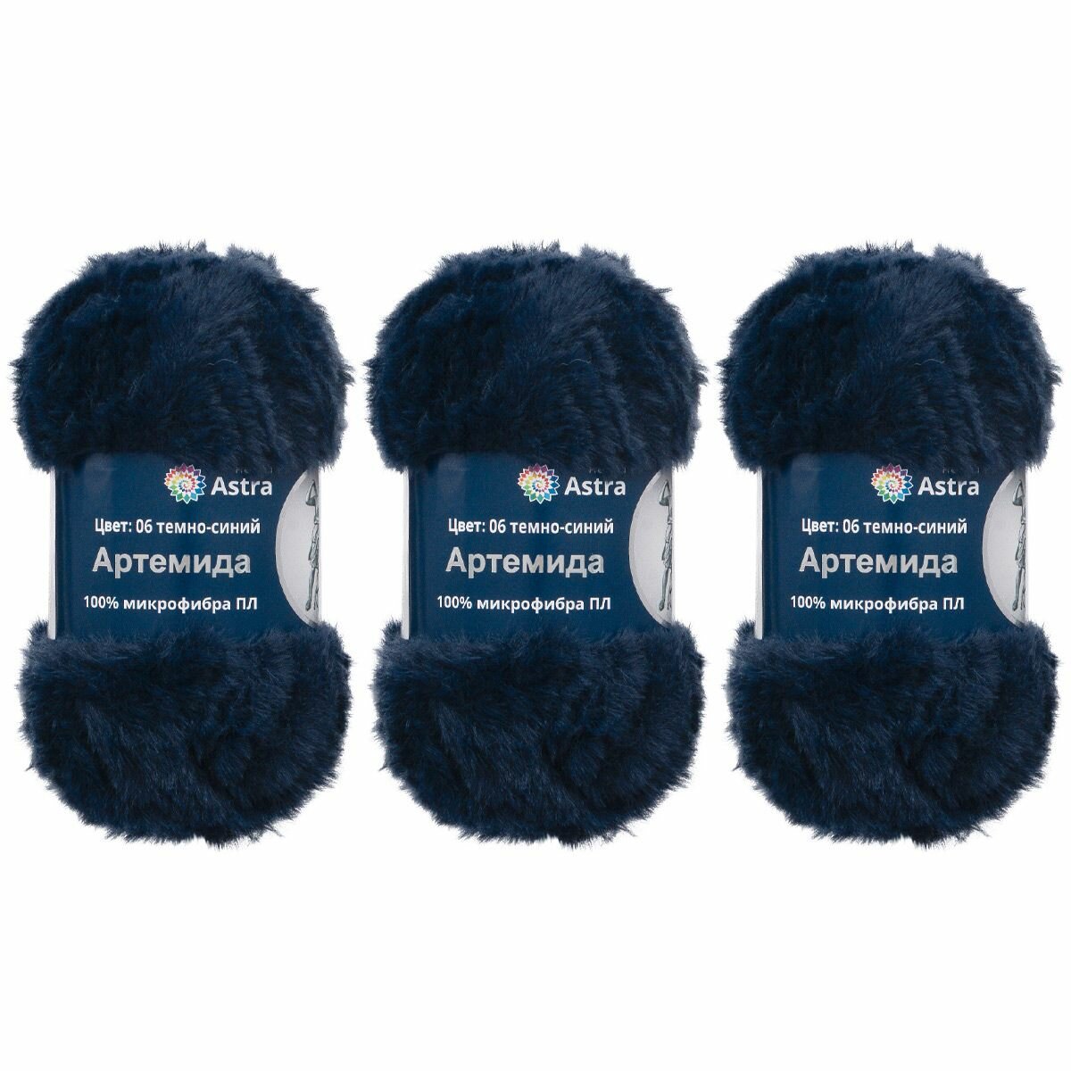 Пряжа для вязания Astra Premium 'Артемида', 100г, 60м (100% микрофибра ПЛ) (06 темно-синий), 3 мотка