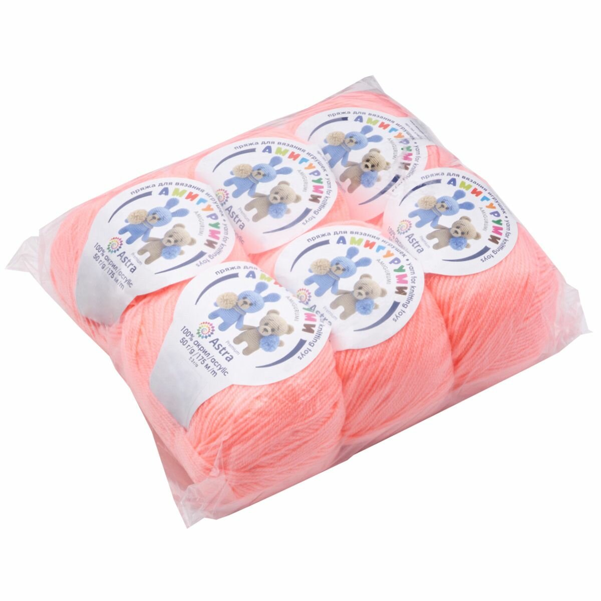 Пряжа для вязания Astra Premium 'Амигуруми' 50г, 175м (100% акрил) (192 чайная роза), 6 мотков