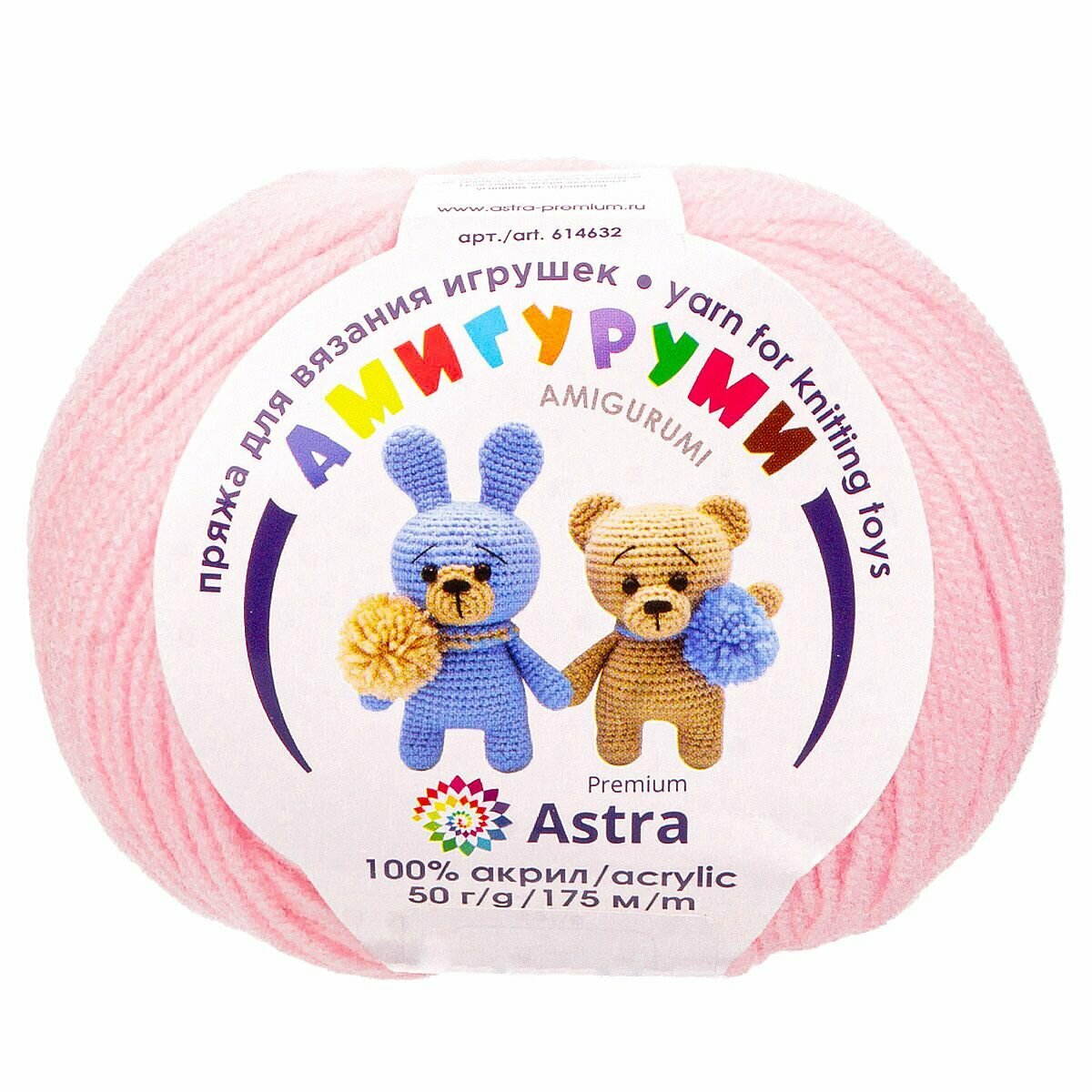 Пряжа для вязания Astra Premium 'Амигуруми', 50г, 175м (100% акрил) (293 розовый песок), 6 мотков