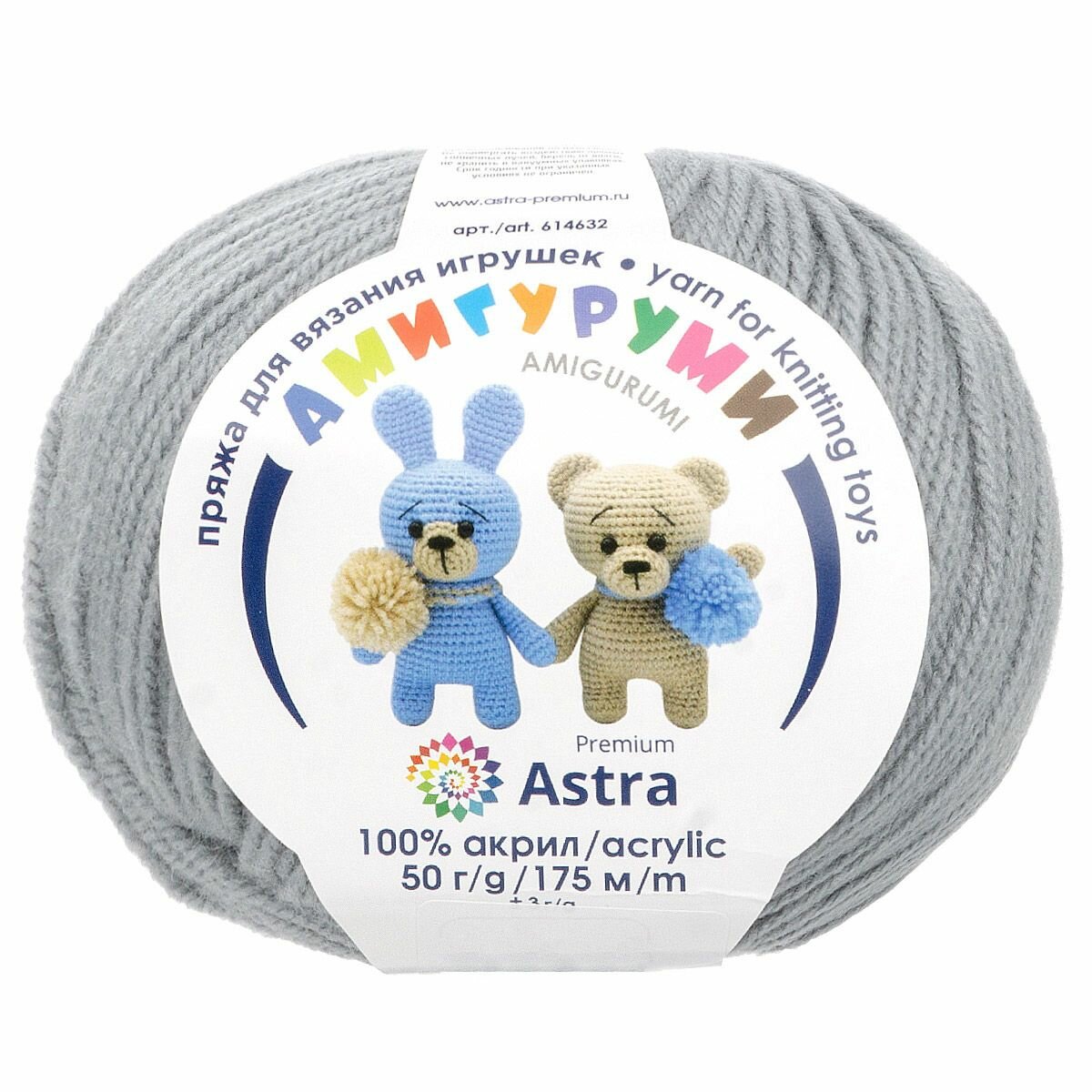 Пряжа Astra Premium "Амигуруми", 50 гр 175 м, 100% акрил, 169 серый, 6 шт