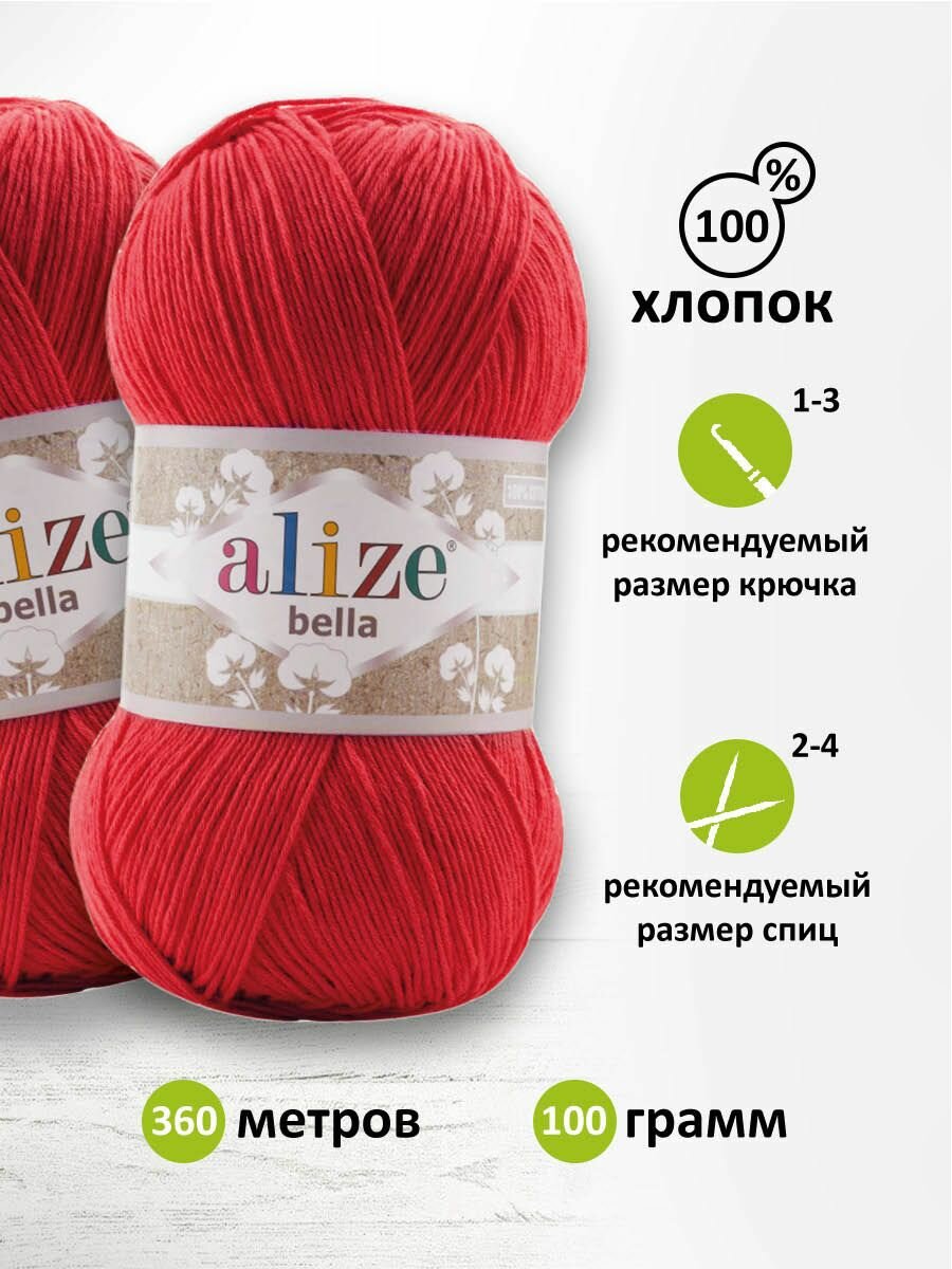Купить Пряжа ALIZE "Bella 100", 100 гр 360 м, 100% хлопок, 56 красный, 5 шт