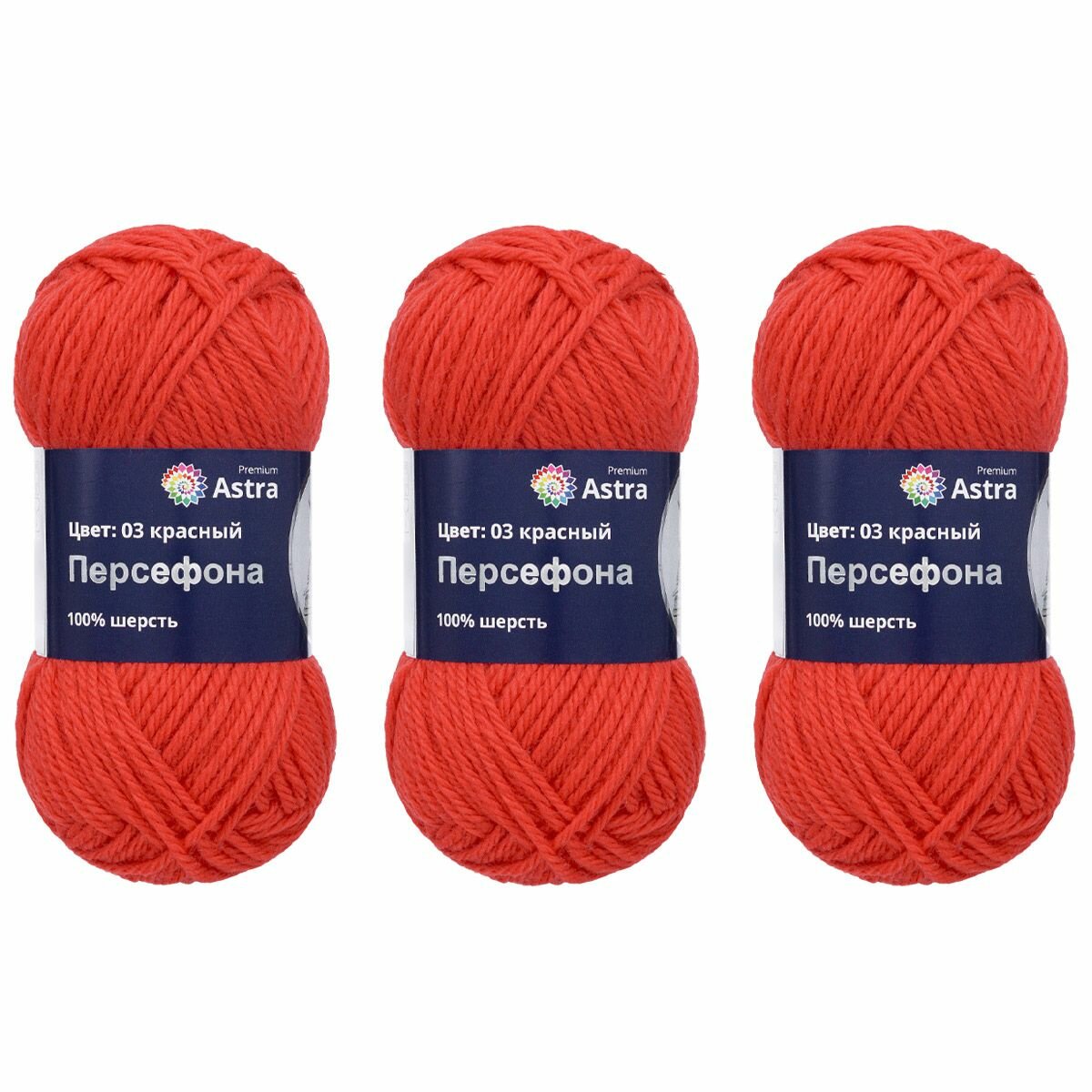 Пряжа Astra Premium "Персефона", 100 гр 100 м, 100% шерсть, 03 красный, 3 шт