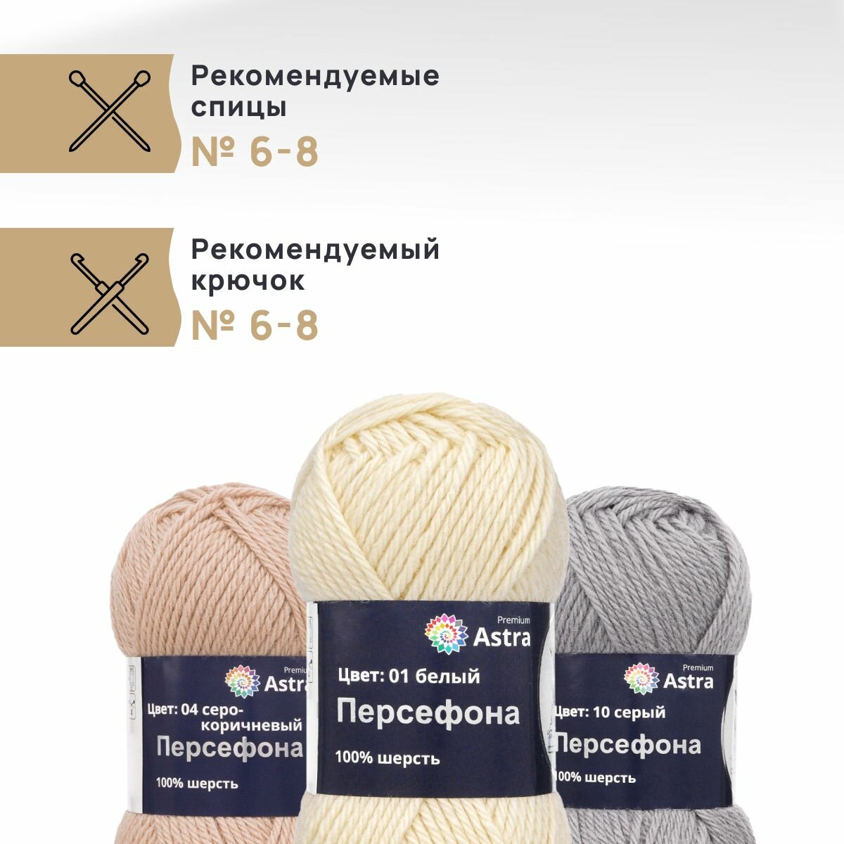 Пряжа для вязания Astra Premium 'Персефона', 100, 100м (100% шерсть) (10 серый), 3 мотка