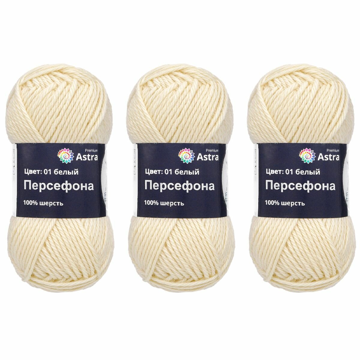 Пряжа Astra Premium "Персефона", 100 гр 100 м, 100% шерсть, 01 белый, 3 шт
