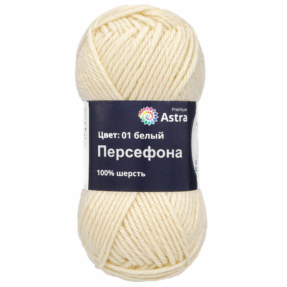 Купить Пряжа для вязания Astra Premium 'Персефона' 100г, 100м (100% шерсть) (01 белый), 3 мотка
