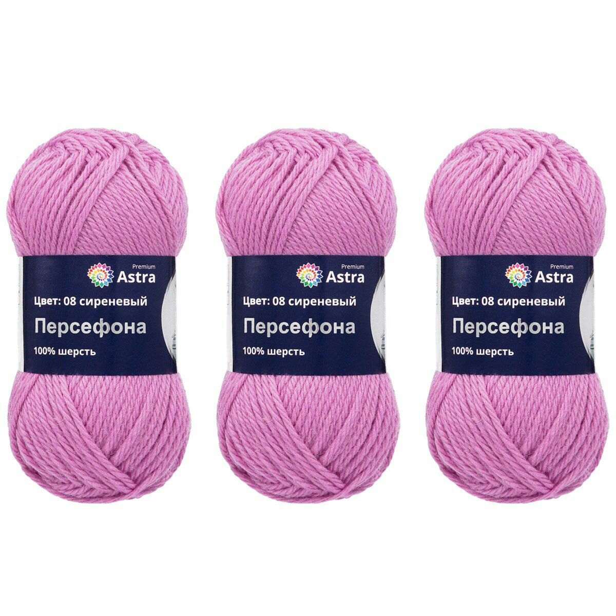 Пряжа для вязания Astra Premium 'Персефона' 100гр. 100м (100% шерсть) (08 сиреневый), 3 мотка