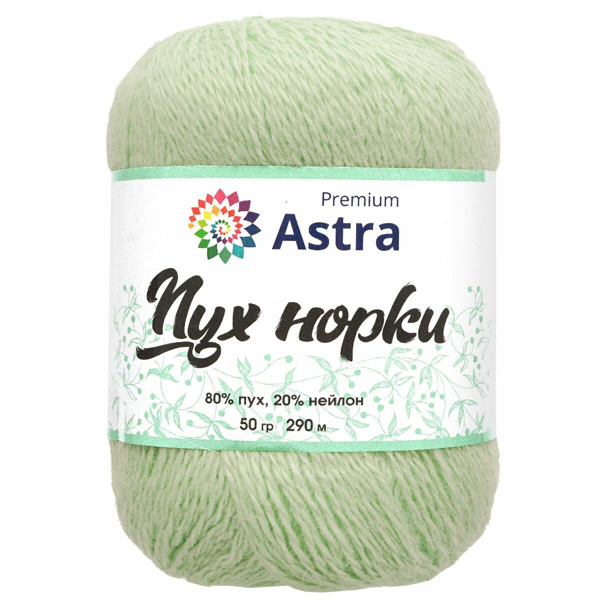 Пряжа Astra Premium "Пух норки", 50 гр 290 м, 80% пух, 20% нейлон, нить 20 гр, 041 светлая мята