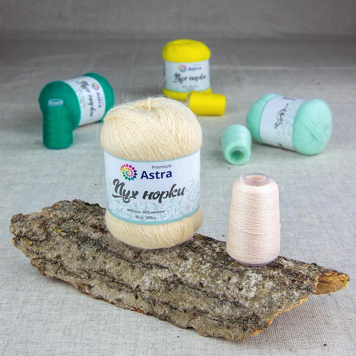 Пряжа Astra Premium "Пух норки", 50 гр 290 м, 80% пух, 20% нейлон, нить 20 гр, 065 кремовый