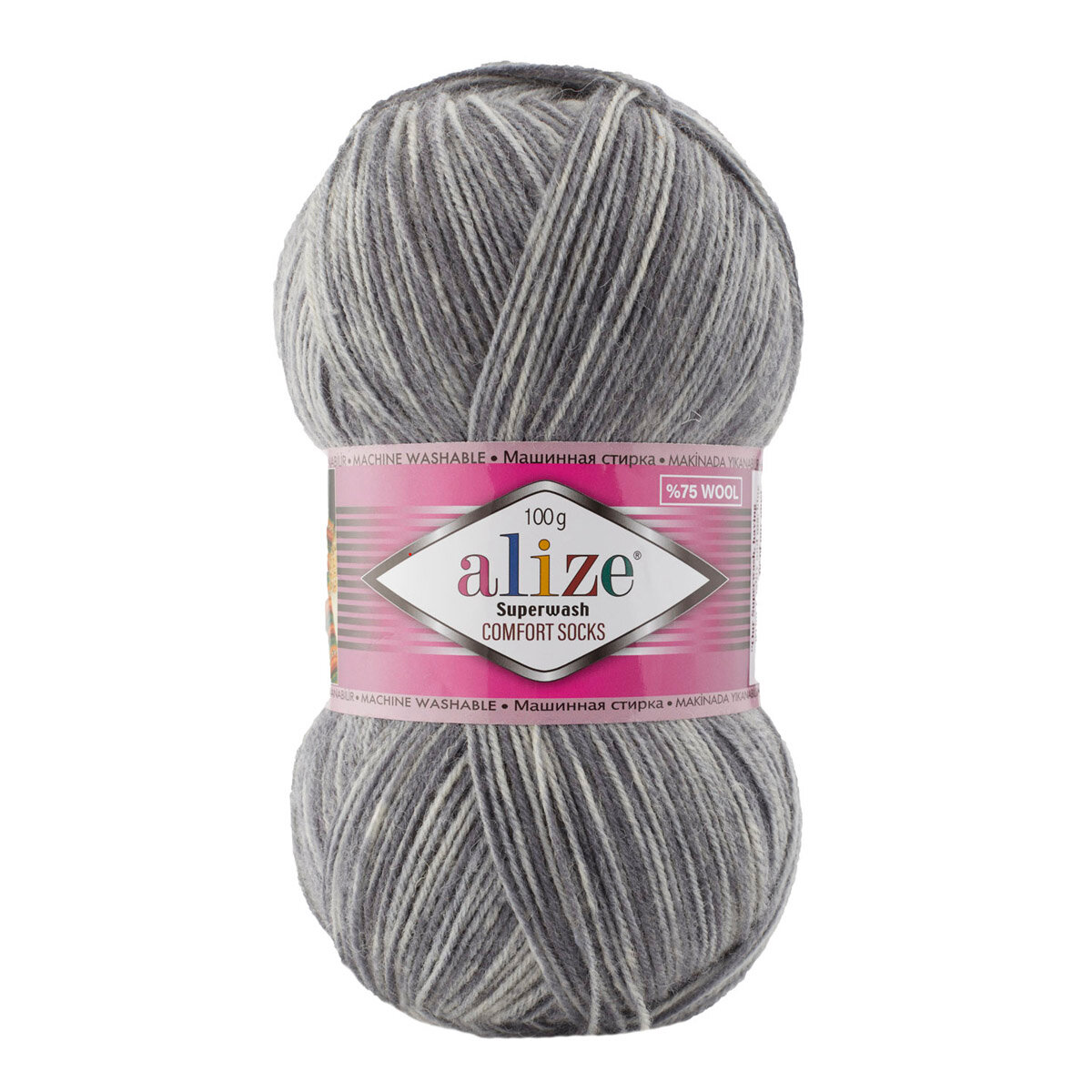 Пряжа Alize Superwash 100 белый-серый-розовый (2698), 75%шерсть/25%полиамид, 420м, 100г, 5шт