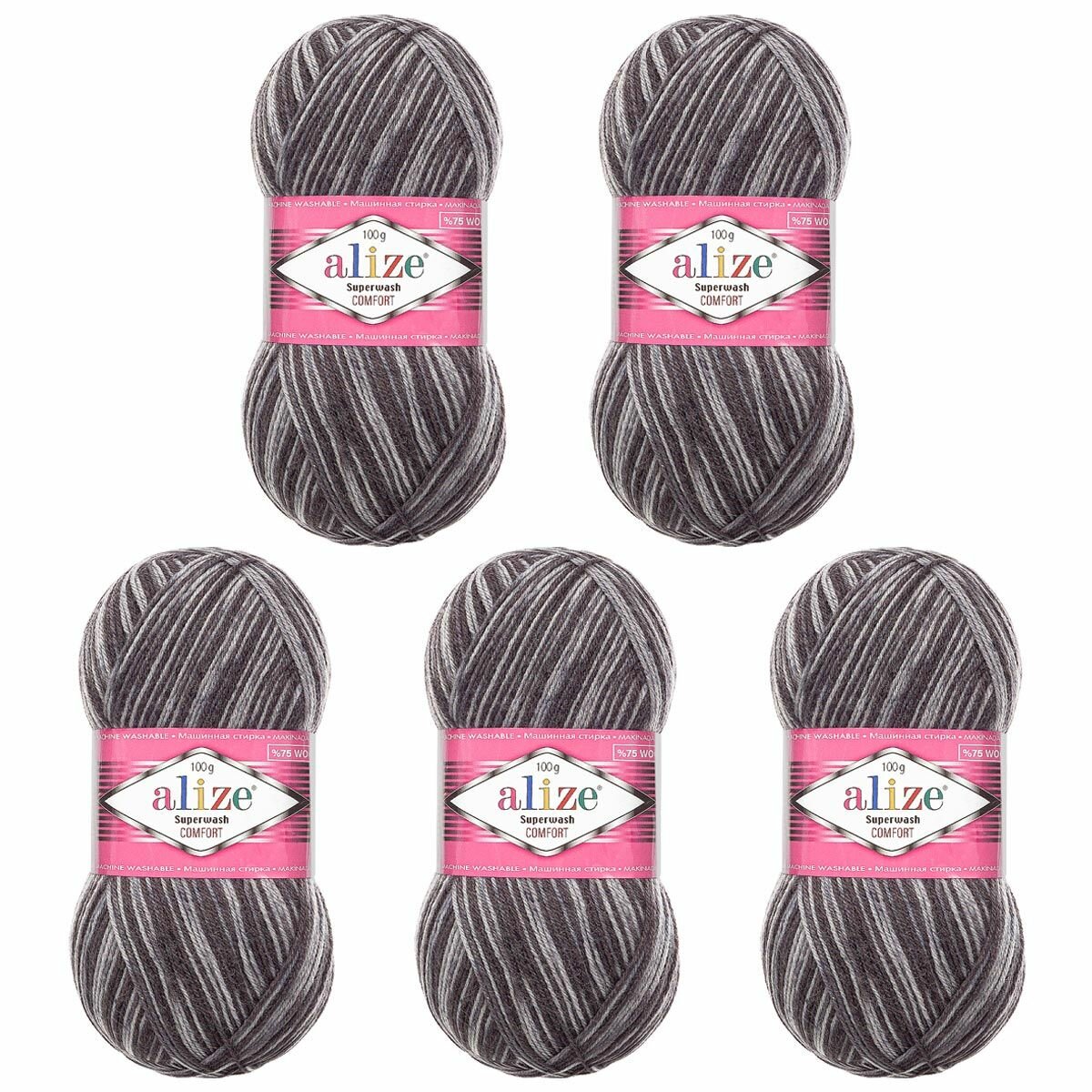 Пряжа ALIZE "Superwash Comfort Socks", 100 гр 420 м, 75% SW шерсть, 25% полиамид, 2701 секционный, 5 шт