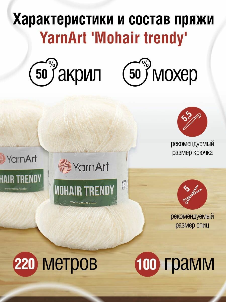Пряжа для вязания YarnArt Mohair Trendy (ЯрнАрт Мохер Тренди) - 1 моток 1003 молочный, полушерсть пушистая, 50% акрил, 50% мохер, 220м/100г