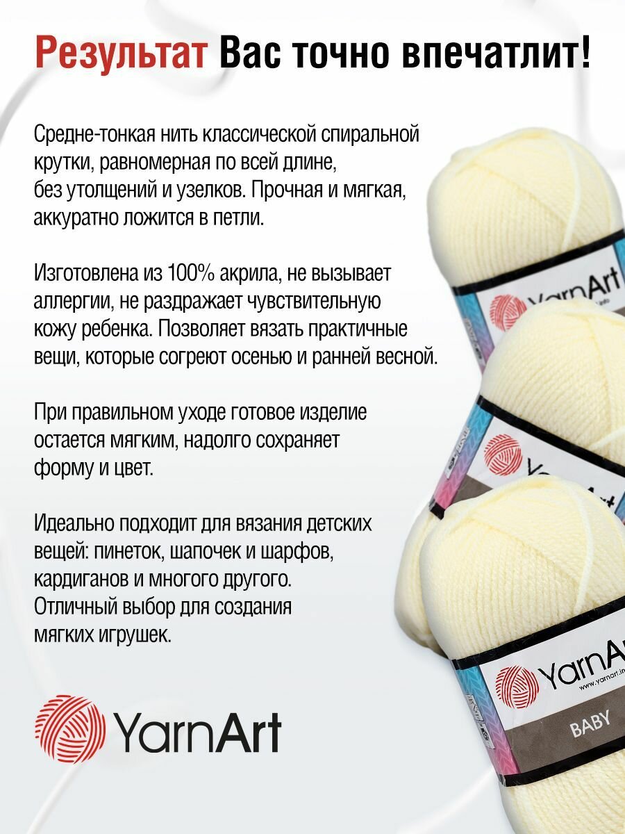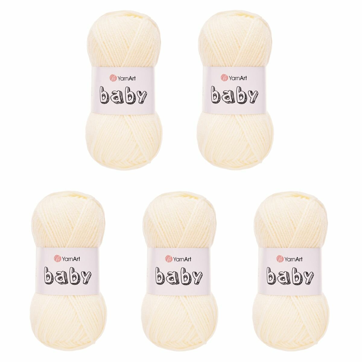 Пряжа для вязания YarnArt Baby (ЯрнАрт Беби) - 5 мотков 502 молочный, гипоаллергенная для детских изделий, 100% акрил, 150м/50г