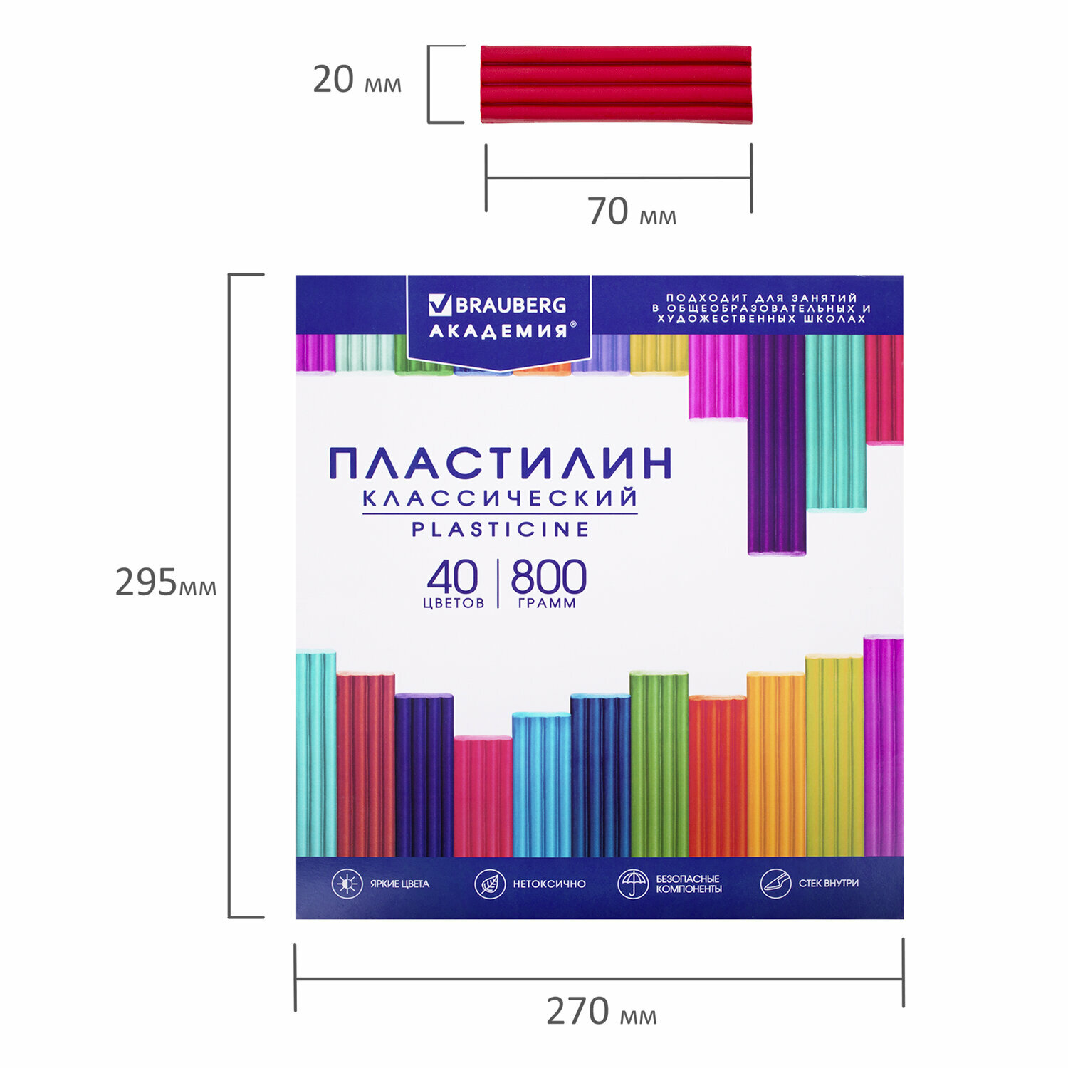 Пластилин Brauberg классический "академия классическая", 24 цвета, 480 г, стек, высшее качество, 106424
