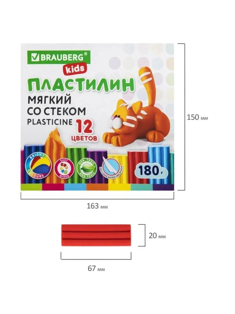 СохранитьПластилин BRAUBERG KIDS, мягкий, классический, со стеком, 180 гр, 12 цветов интересное: