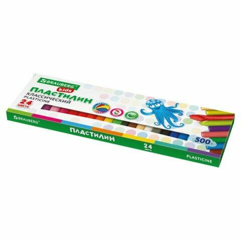 Купить Пластилин классический BRAUBERG KIDS, 24 цвета, 500 г, высшее качество, 105874